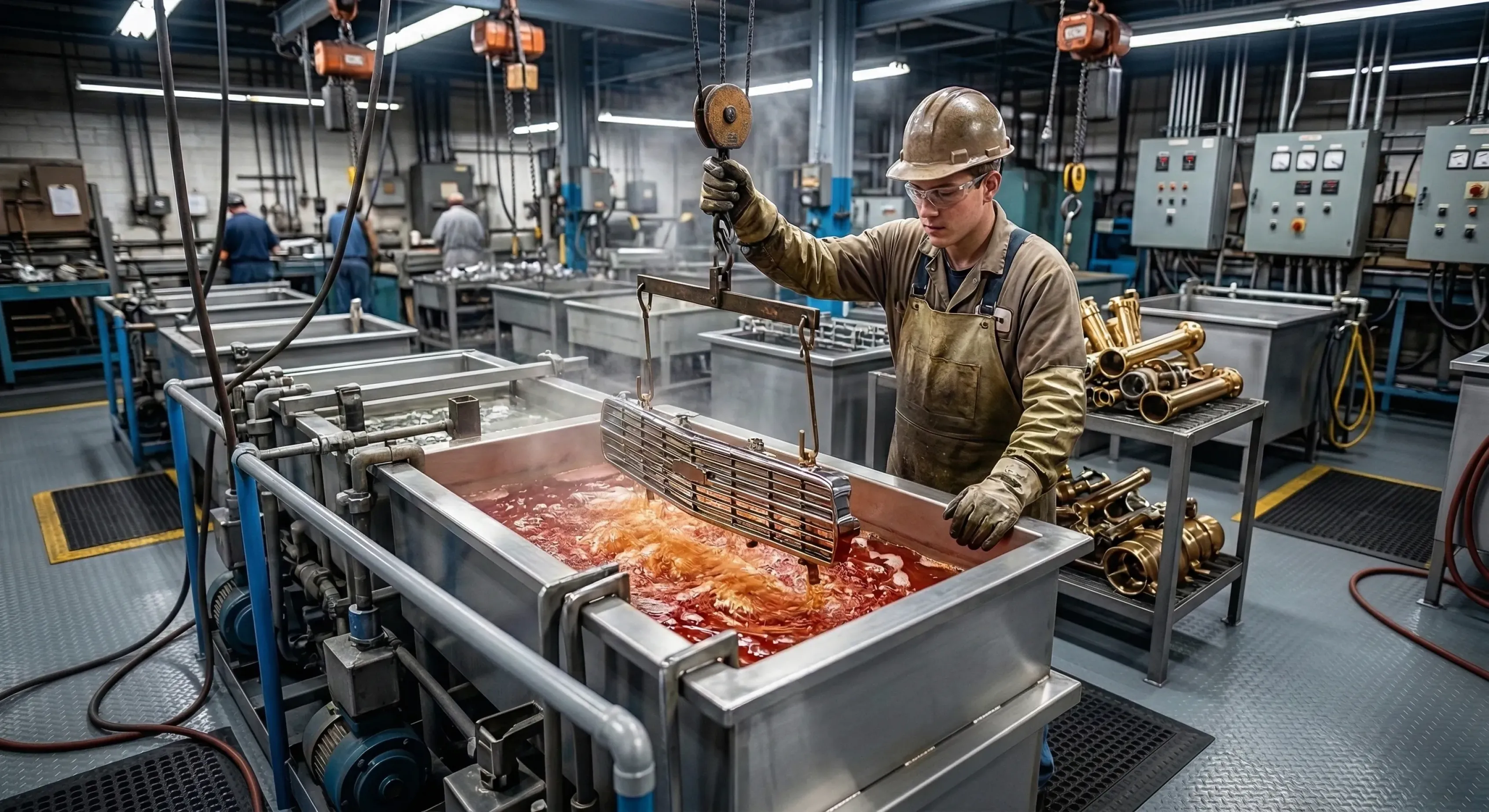 • Chemická a elektrochemická ochrana povrchu součástek ve vanových zařízeních - ruční obsluha